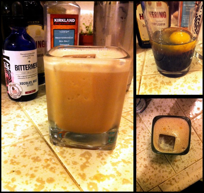 This isn’t so much a dessert drink as it is a dessert course. The nose was a predictable cherry and chocolate, but the first sip evoked chocolate milk and, strangely enough, pie. The egg serves to thicken the already very thick Heering base, and the salt only makes it more savory while offering a bit of sourness on the back end.