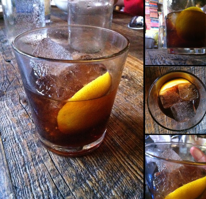 (2) Sweet Vermouth. Not dry vermouth, not bianco vermouth, not barolo chinato (which is like double-dutch heaven), but sweet vermouth. The red kind. Because that’s what’s in it.